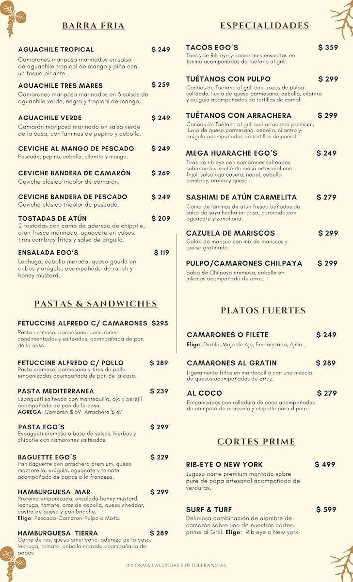 Welcome to Restaurante Egos Mar, Tierra y Mixologia, a seafood haven located in Playa del Carmen. Nestled between Calle Sardina and Calle 78, this unique dining gem offers an exquisite blend of coastal flavors and innovative mixology. The menu showcases a rich array of seafood dishes, crafted with fresh local ingredients, ensuring an authentic taste of the ocean.